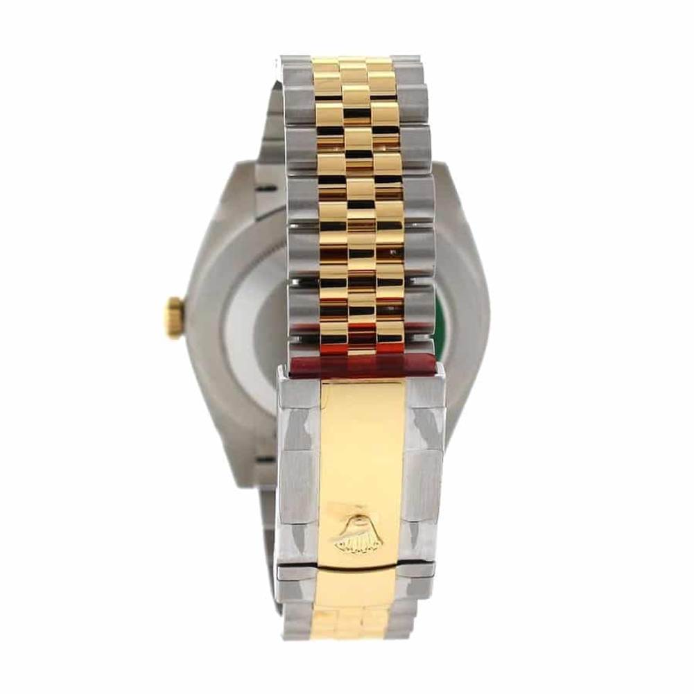 Every component of this replica is constructed with 904L stainless steel, the same high-grade material used in genuine Rolex timepieces. Renowned for its superior resistance to corrosion and exceptional sheen, 904L steel ensures both durability and brilliance. The combination of yellow gold and steel tones across the case and Jubilee bracelet highlights the classic two-tone elegance that defines the Rolex Datejust legacy.
